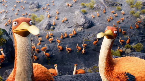 A pair of clumsy birds try their best to protect their eggs from a volcanic eruption.