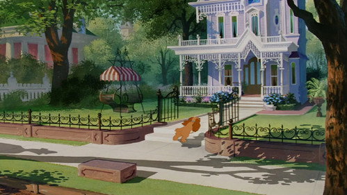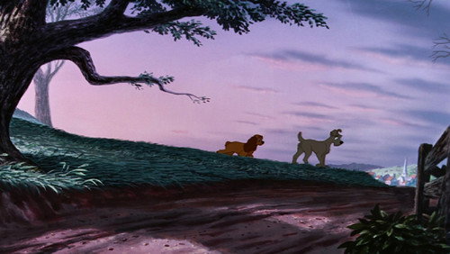 Lady, a golden cocker spaniel, meets up with a mongrel dog who calls himself the Tramp. He is obviously from the wrong side of town, but happenings at Lady's home make her decide to travel with him for a while.