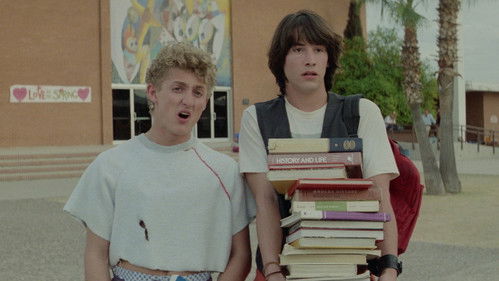 Bill and Ted are high school buddies starting a band. They are also about to fail their history class—which means Ted would be sent to military school—but receive help from Rufus, a traveller from a future where their band is the foundation for a perfect society. With the use of Rufus' time machine, Bill and Ted travel to various points in history, returning with important figures to help them complete their final history presentation.