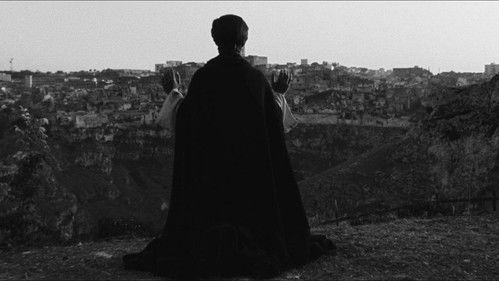 Along a rocky, barren coastline, Jesus begins teaching, primarily using parables. He attracts disciples; he's stern, brusque, and demanding. His parables often take on the powers that be, so he and his teachings come to the attention of the Pharisees, the chief priests, and elders. They conspire to have him arrested, beaten, tried, and crucified, just as he prophesied to his followers.
