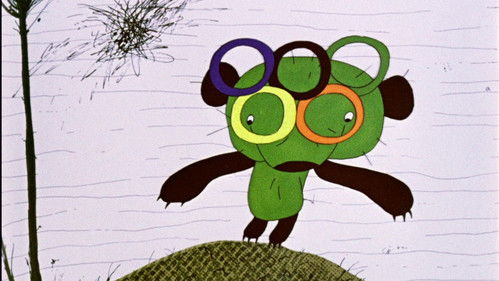 A tiny green bear (the Trickster) tries his best to impress a group of animals with his annoying tricks.