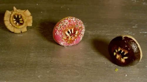 A chemical accident turns ordinary donuts into blood thirsty killers. Now it's up to Johnny, Michelle and Howard to save their sleepy town from...Killer Donuts.