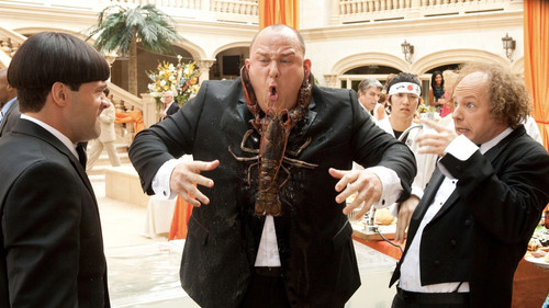 Left on the doorstep of an orphanage run by nuns, three newborn knuckleheads grow up to be finger-poking, nyuk-nyuking janitors named Larry, Curly and Moe. When they learn that financial problems will soon force the only home they've ever known to close, the trio sets out to raise $830,000 in one month. Out in the world for the very first time, the three innocent bumblers become embroiled in a murder plot and find stardom on a TV reality show.