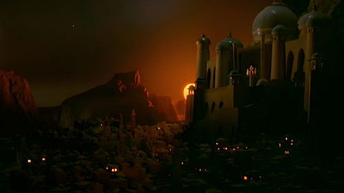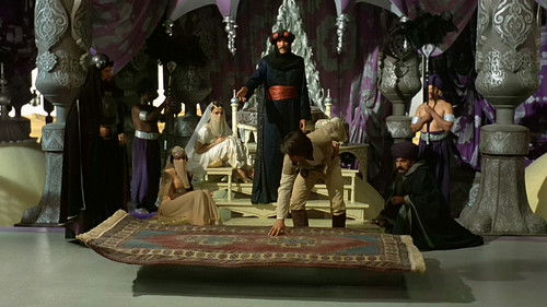 An evil caliph (Christopher Lee) offers his daughter’s hand in marriage to a prince if he can complete a perilous quest for a magical rose. Helped by a young boy and a magic carpet, Prince Hasan (Oliver Tobias), has to overcome genies, fire breathing monsters and treacherous swamps to reach his prize and claim the hand of the Princess Zuleira (Emma Samms).