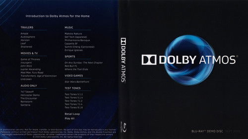 Dolby Atmos introduces a new sound quality and invites us to get to know it. The disc features trailers, documentaries about Dolby Atmos and videos that allow us to immerse ourselves in a world of new sound. There are also comparison videos with alternate playback of Dolby Atmos and Dolby Digital to feel the difference.