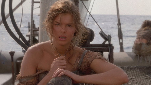 In a futuristic world where the polar ice caps have melted and made Earth a liquid planet, a beautiful barmaid rescues a mutant seafarer from a floating island prison. They escape, along with her young charge, Enola, and sail off aboard his ship. But the trio soon becomes the target of a menacing pirate who covets the map to 'Dryland'—which is tattooed on Enola's back.